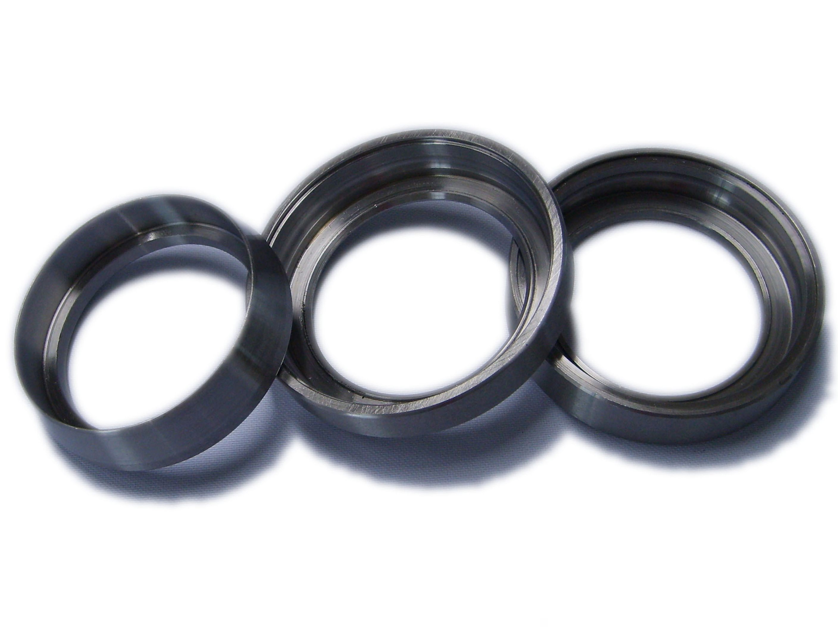 Bearing rings in different forms: machined green rings before heat treatment, machined black rings after heat treatment, and ground rings ready for assembly. We use both through-hardened bearing steel that is commonly seen in China and carburized bearing steel such as SAE 8620H, 4118H and 3311, etc. from prominent steel sources in China, Japan, US, and Europe.